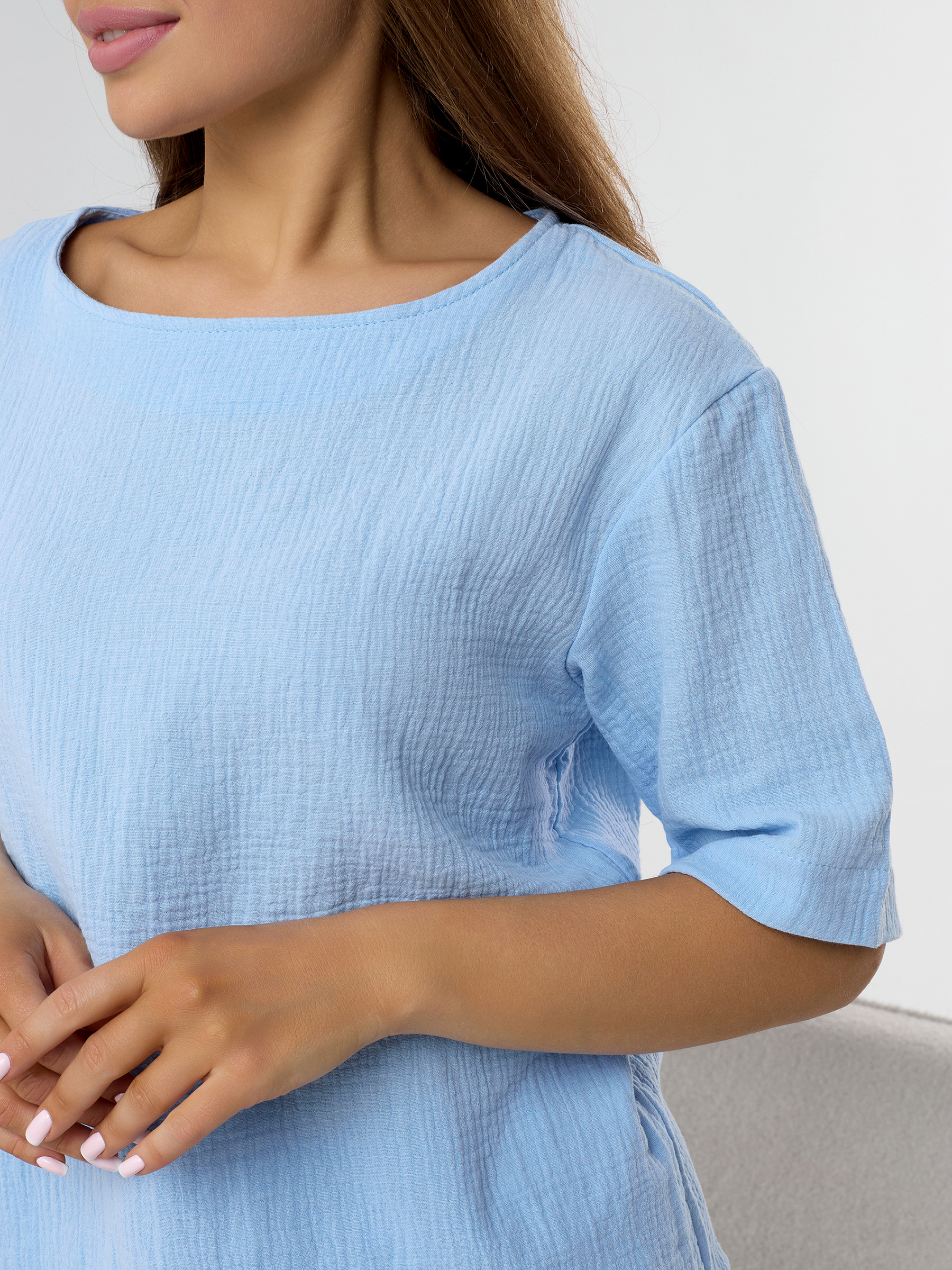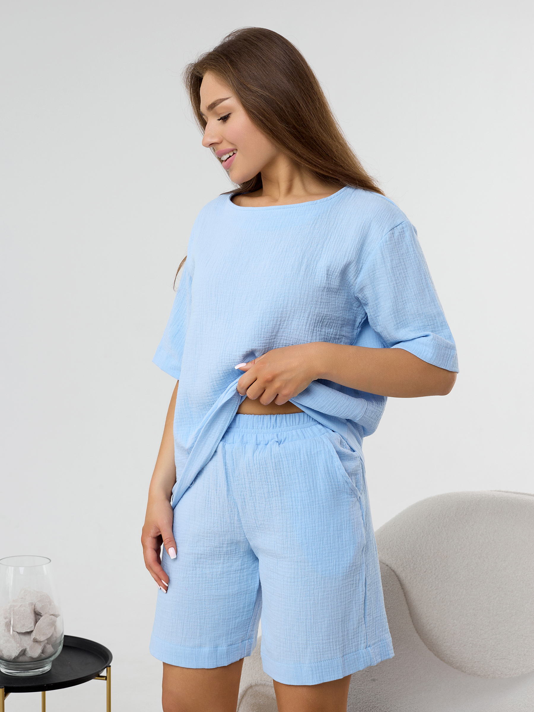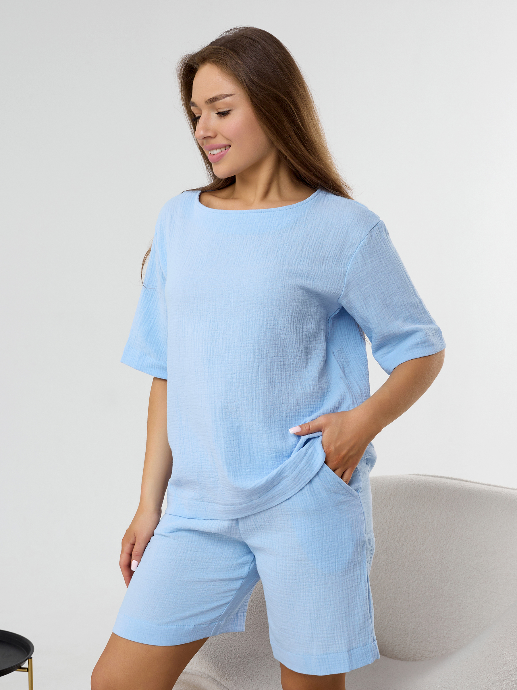 Домашний костюм из муслина женский голубой